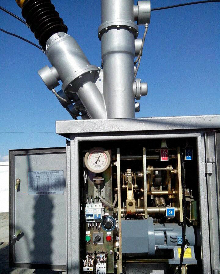 1.1 LW8-40.5型户外高压六氟化硫断路器是一种以六氟化硫为灭弧介质,三相交流50Hz的户外高压电气设备。适用于35kV输配电系统的控制和保护,也可用于联络断路器及开合电容器组的场合;并可内附电流互感器供测量与保护用。